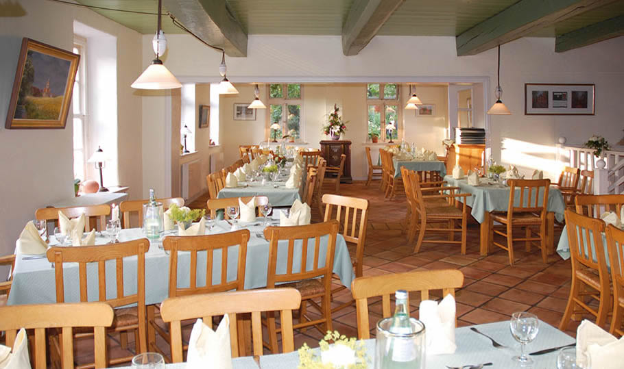 Den Nachmittag rundet eine ostfriesische Teestunde mit Kluntje, Sahne und einem “lecker Stück Kauk” ab. Die Abendkarte mit ausgewählten saisonal wechselnden Gerichten bietet mit Fleisch-, Fisch- und vegetarischen Menüs eine feine Auswahl an immer frisch zubereiteten Speisen.