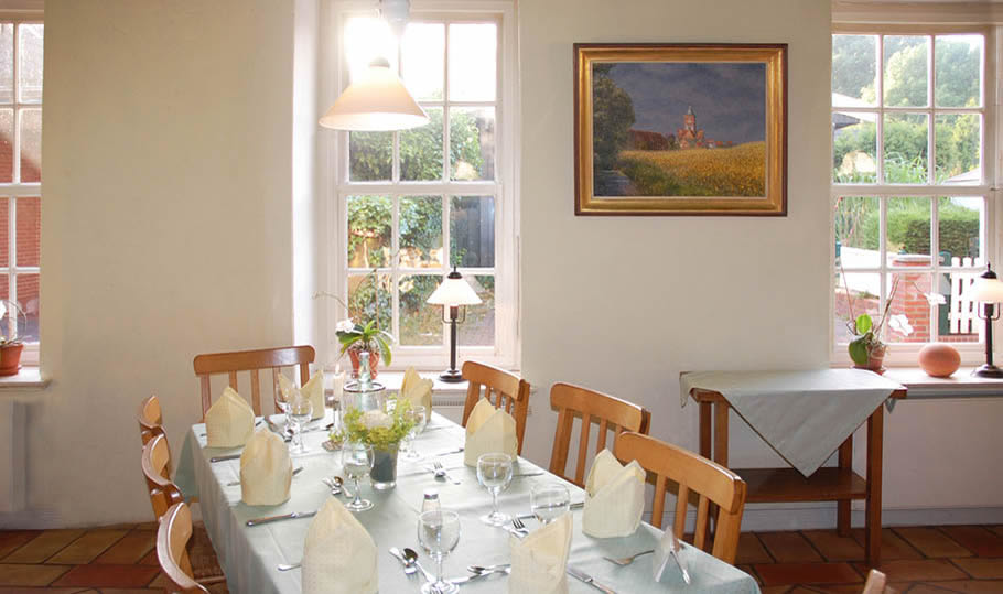 Der Kreativität der Restaurantküche verdanken wir kulinarische Gaumenfreuden, die auf überwiegend regionalen Produkten hiesiger Erzeuger basieren. Der täglich wechselnde Mittagstisch bietet zwei Gerichte zur Auswahl, jeweils mit einer Vorsuppe und einem Kaffee.