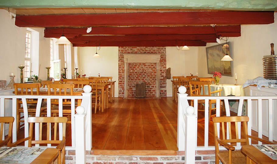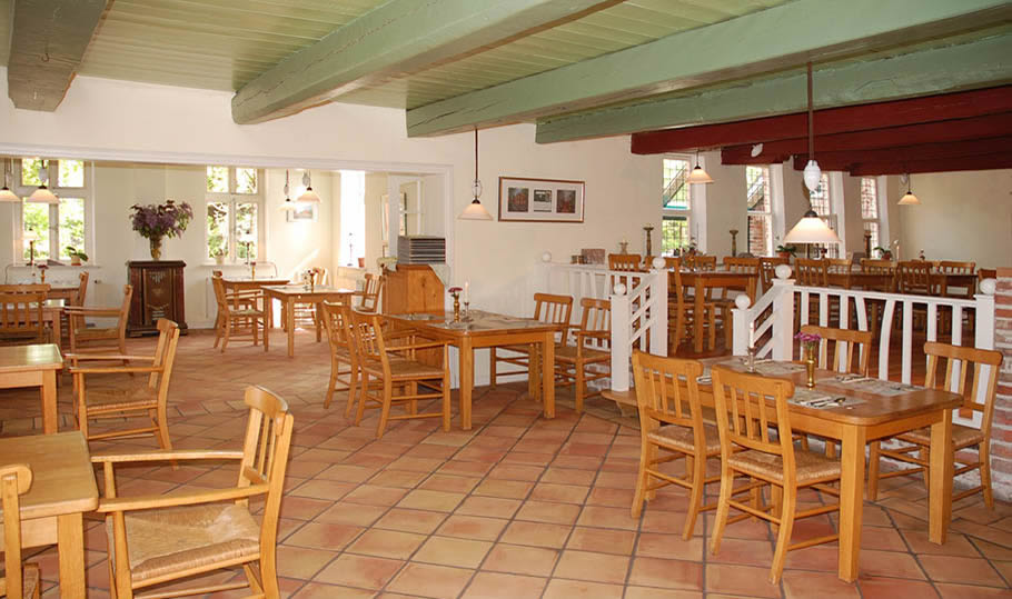 Den Nachmittag rundet eine ostfriesische Teestunde mit Kluntje, Sahne und einem “lecker Stück Kauk” ab. Die Abendkarte mit ausgewählten saisonal wechselnden Gerichten bietet mit Fleisch-, Fisch- und vegetarischen Menüs eine feine Auswahl an immer frisch zubereiteten Speisen.
